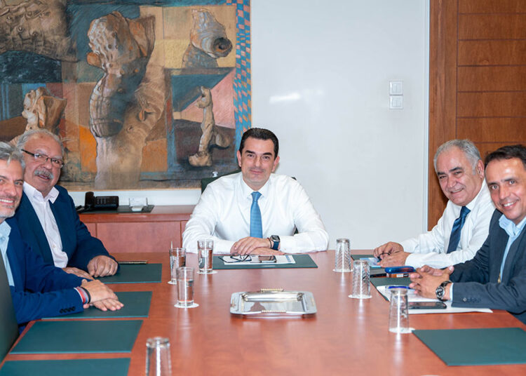 Αντιπροσωπεία του Επαγγελματικού Επιμελητηρίου Αθηνών, με επικεφαλής τον Πρόεδρο Γιάννη Χατζηθεοδοσίου, επισκέφθηκε τον Υπουργό Ανάπτυξης, Κώστα Σκρέκα, την Τετάρτη 3 Απριλίου 2024.