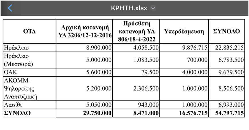Προς αυτήν την κατεύθυνση το πρόγραμμα Leader στην Κρήτη στα αρχικά 29.750.000 ευρώ προστέθηκαν ακόμη 8.471.000, ενώ με την υπερδέσμευση των 16.576.715, λόγω του μεγάλου ενδιαφέροντος, το πρόγραμμα έχει φθάσει στα 54.797.715 ευρώ.