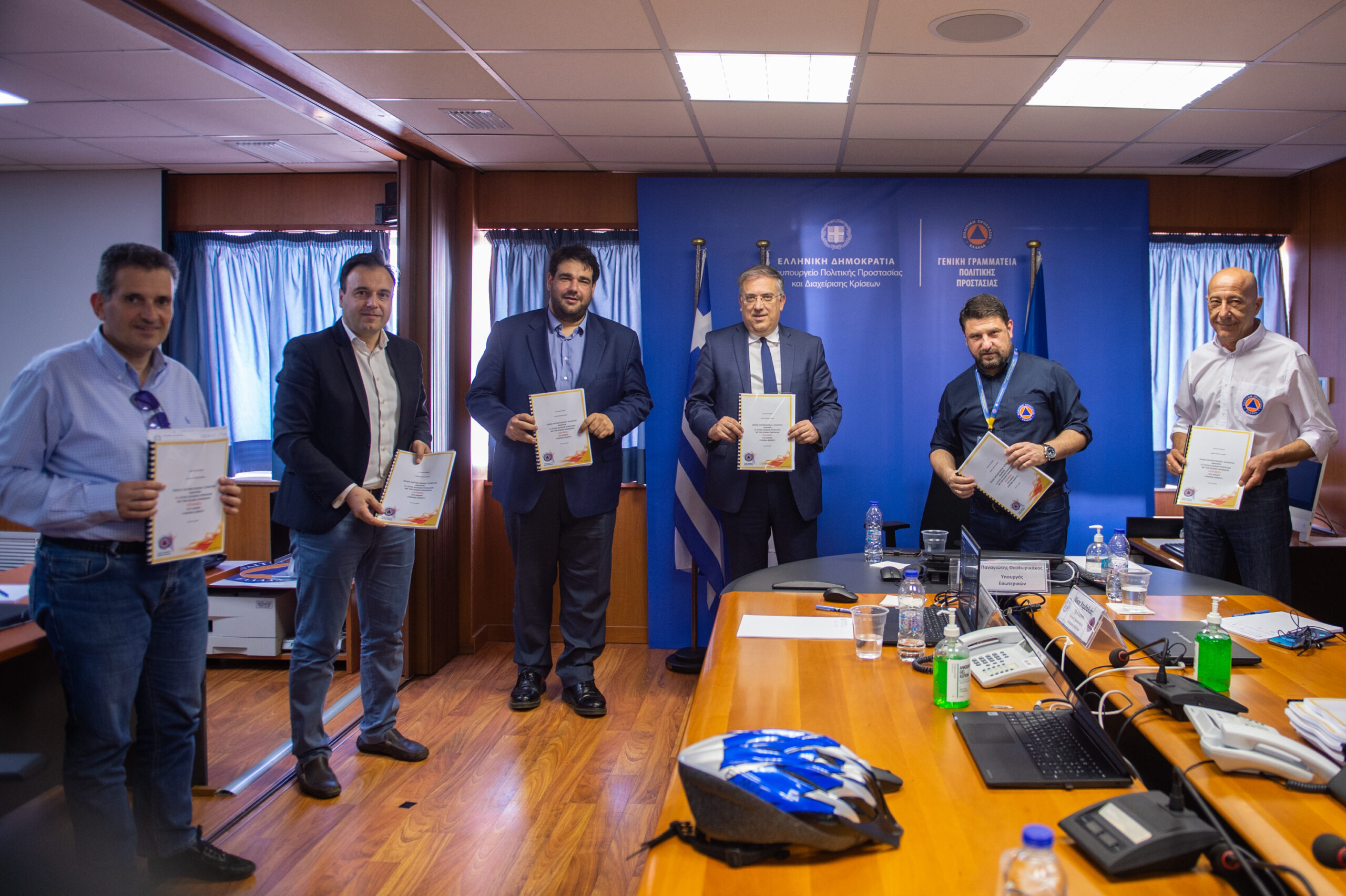 Στην σύσκεψη επίσης, συμμετείχαν ο Γενικός Γραμματέας Πολιτικής Προστασίας κ. Βασίλειος Παπαγεωργίου, ο Διευθυντής Σχεδιασμού Αντιμετώπισης Εκτάκτων Αναγκών της ΓΓΠΠ κ. Φοίβος Θεοδώρου, ο Β’ Αντιπρόεδρος της ΚΕΔΕ κ. Δημήτρης Καρναβός, καθώς και στελέχη της ΓΓΠΠ και της ΚΕΔΕ.
