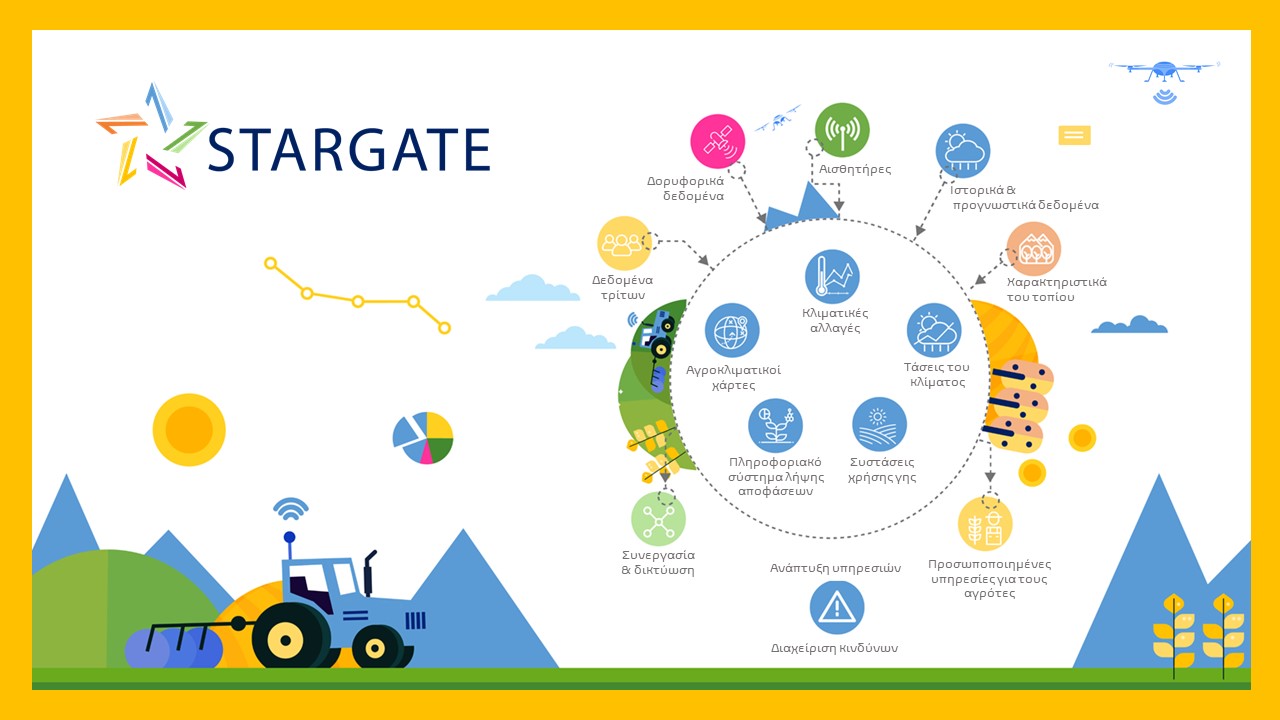 Το STARGATE φιλοδοξεί να αναπτύξει μια μεθοδολογία έξυπνης, πολυεπίπεδης και ολιστικής προσέγγισης για μια κλιματικά έξυπνη γεωργία, αξιοποιώντας καινοτομίες διαχείρισης του μικροκλίματος και της διαχείρισης των ευρύτερων κινδύνων λόγω καιρικών συνθηκών.